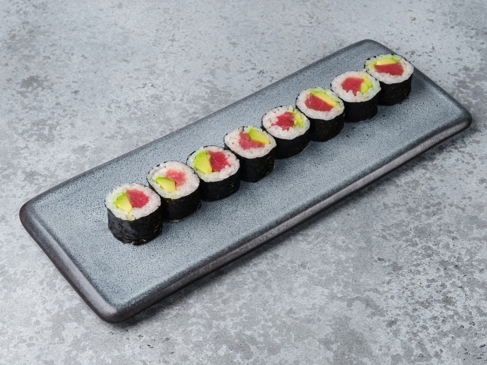 Вдохновлённый традиционным «Теккамаки», но дополненный авокадо для современного вкуса. Сочетание, ставшее мировой классикой. Васаби, маринованный имбирь, соевый соус - в подарок.