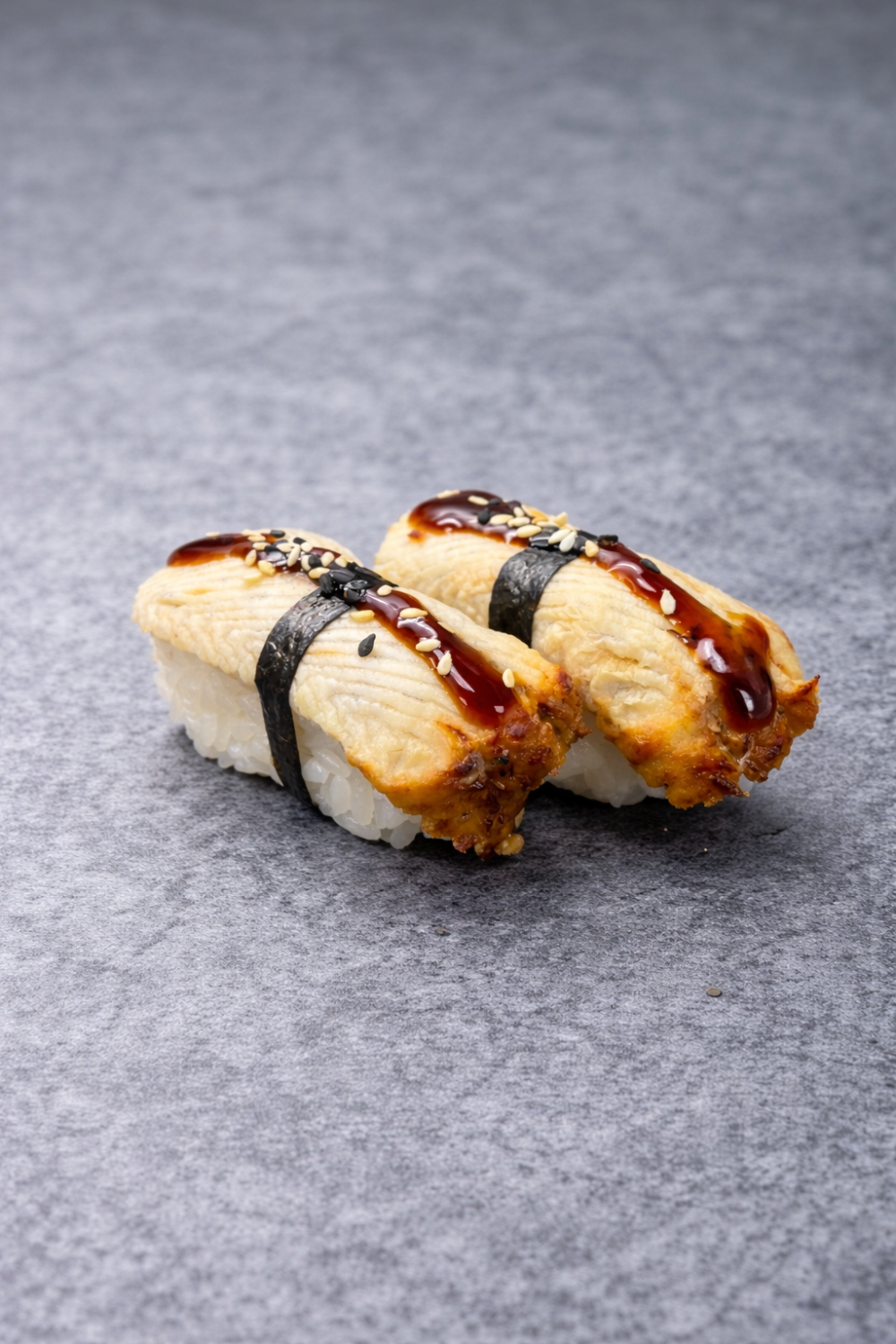 Филе угря гриль в фирменном соусе унаги на рисе с нори. Посыпано ароматным кунжутом. Яркий, насыщенный вкус, любимец гурманов. Порция: 2 суши.